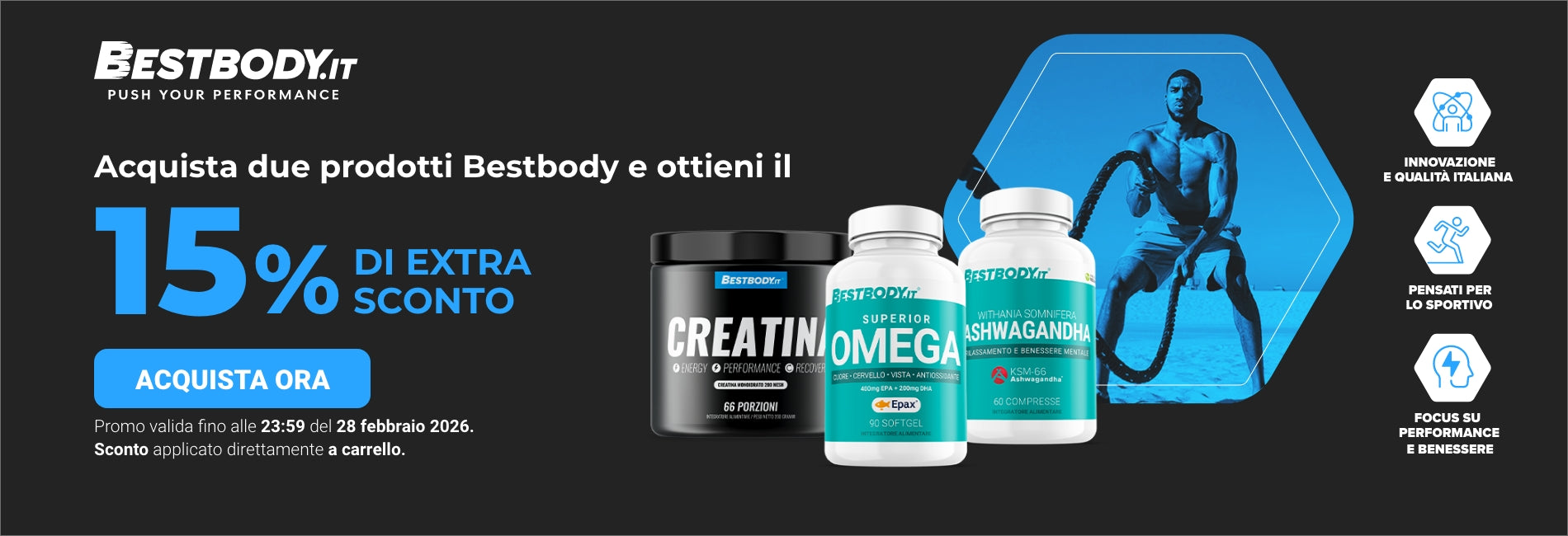 - Integratori alimentari: Vitamine, minerali, aminoacidi per sostenere il tuo benessere.
