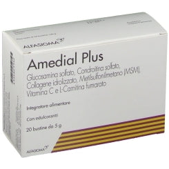 Utile per il buon funzionamento fisiologico della cartilagine e dell'osso Amedial Plus è un integratore alimentare con Vitamina C, Glucosamina...