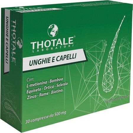 Thotale Unghie e Capelli è un integratore alimentare a base di L-metionina, bamboo, equiseto, ortica, selenio, zinco, rame e biotina....