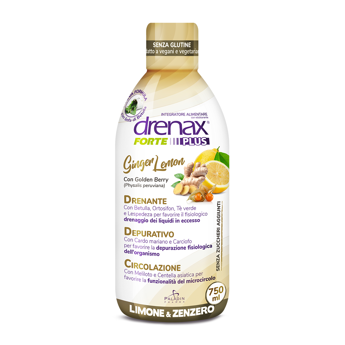 Drenax Forte Plus Ginger Lemon Complemento alimentare con Golden Berry, con estratti di betulla, ortosifon , tè verde e lespedeza.Con...