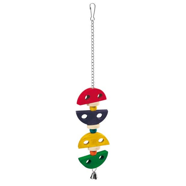 Gioco pendente per pappagalli e cacatua In legno colorato con vernice atossica Dotato di un campanellino Con catenina e gancio...