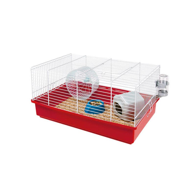 Gabbia di piccole dimensioni per criceti fondo in plastica.Rete e fondo separabili.Portina d'ingresso dotata di chiusura di sicurezza.Realizzata in plastica...