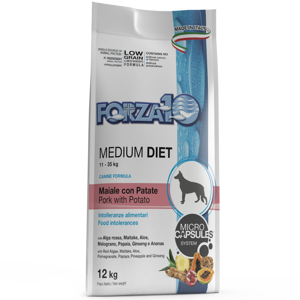 Forza 10 Medium Diet Maiale Con Patate Cibo Secco Per Cani Taglia Media Sacco 12 Kg