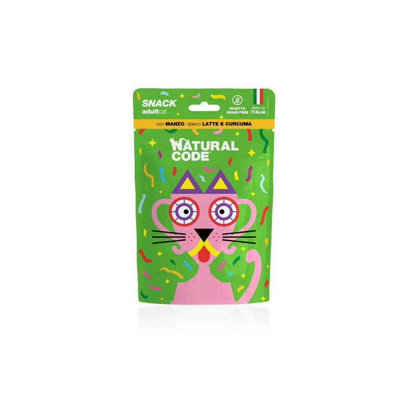 Natural Code Snack Per Gatti Adulti con Manzo Ripieno di Latte e Curcuma Busta 60g