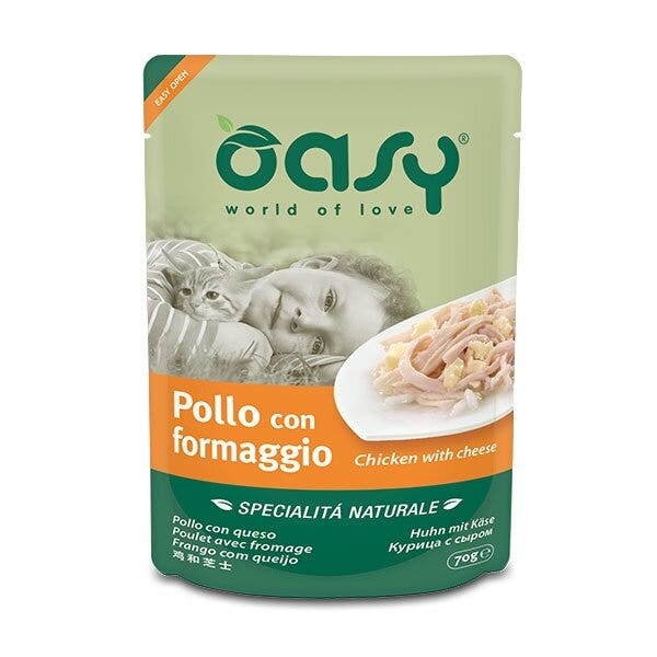 Oasy Wet Cat Cibo Umido Pollo Formaggio Per Gatti Adulti 70g