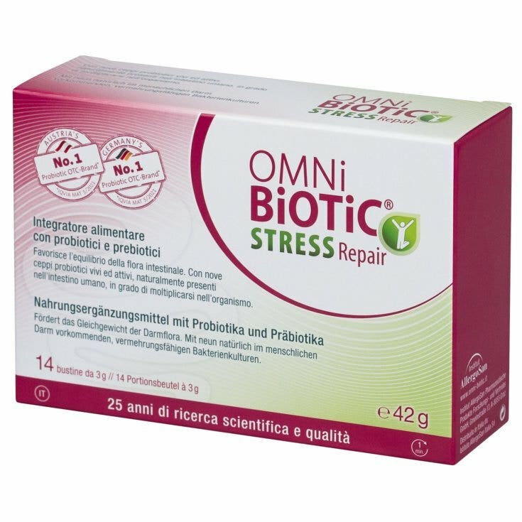 OMNi BiOTiC STRESS Repair Descrizione Integratore alimentare con probiotici e prebiotici, favorisce l'equilibrio della flora batterica intestinale. Con nove ceppi...