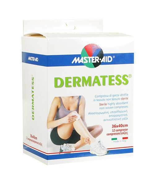 MASTER-AID DERMATESS Dispositivo medico CE 0373. Compressa morbida di garza sterile in tessuto non tessuto, monoestensibile. Grazie al tipo di tessuto...