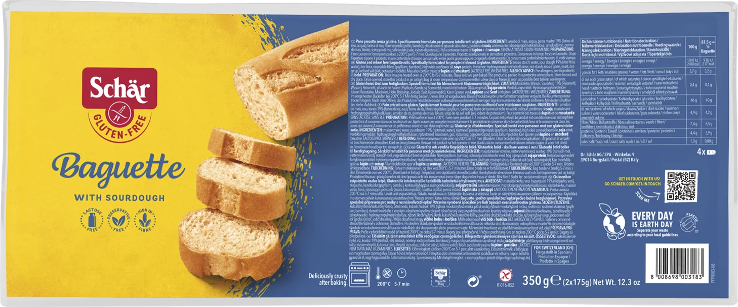 Schär Baguette Caratteristiche Pane precotto naturalmente senza glutine, senza amido di frumento, senza lattosio, senza aggiunta di latte, senza aggiunta...