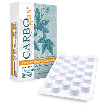 Carbogas Integratore alimentare a base di Carbone Attivo Vegetale, Ortica, Finocchio, Angelica e probiotici.Modo d’usoSi consiglia di assumere 1-2 compresse prima...