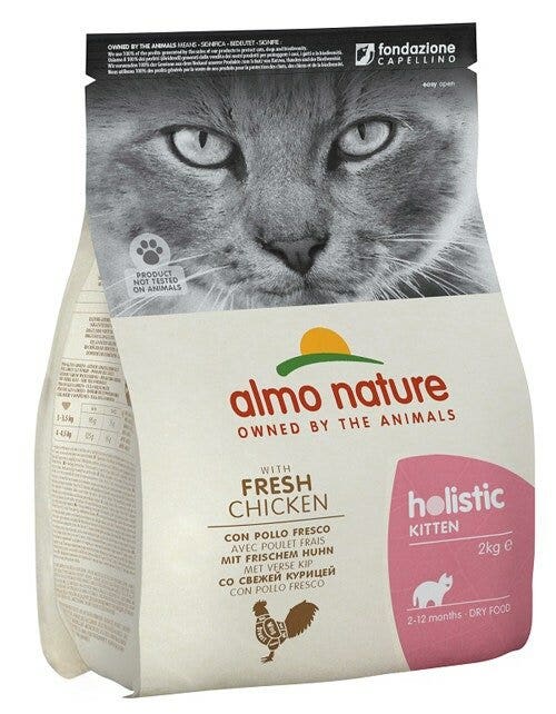 Alimento secco completo, per gatti. Ricetta priva di OGM, coloranti artificiali o conservanti chimici.