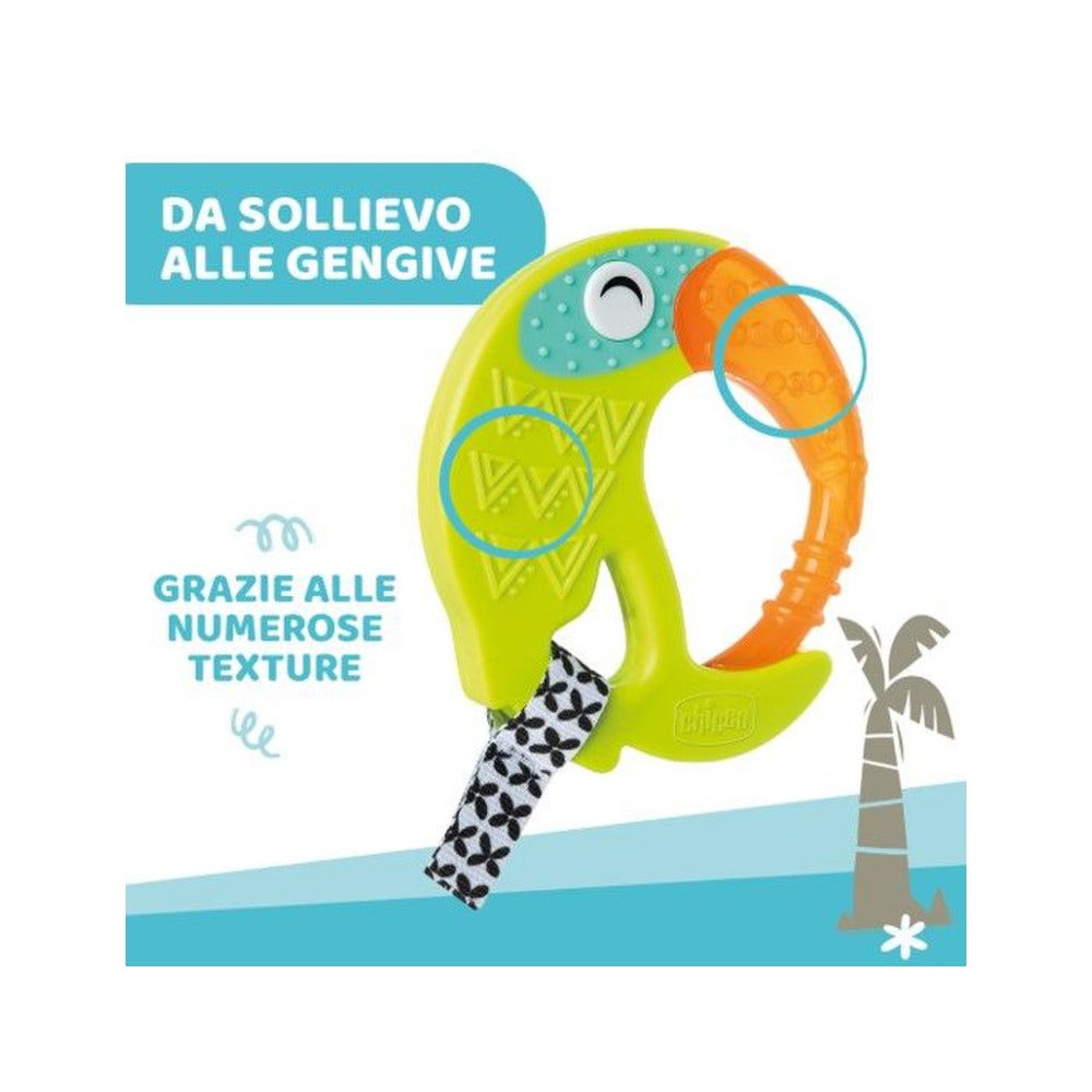 Multisensoriale, sicuro sulle gengive del bambino, rinfresca le gengive, grazie a una sezione piena d'acqua che può essere raffreddata in frigorifero, e stimola i sensi (vista, udito e tatto).