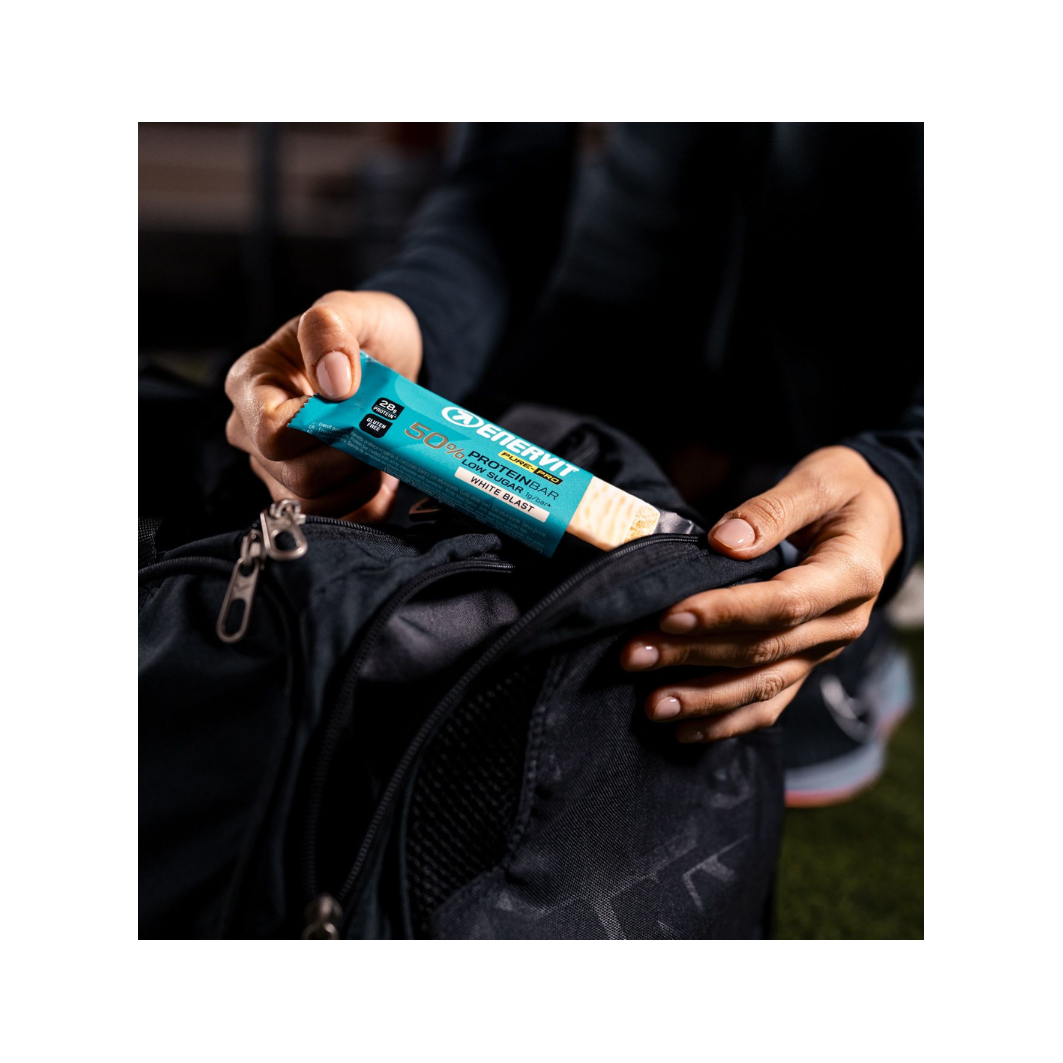 Enervit PURE-PRO Protein Bar 50% White Blast è la barretta ad alto titolo proteico (28 g per barretta) che combina gusto e funzionalità. É ideale per il post-workout, ma anche come spuntino in ogni momento della giornata per chi voglia assumere proteine a supporto della massa muscolare.