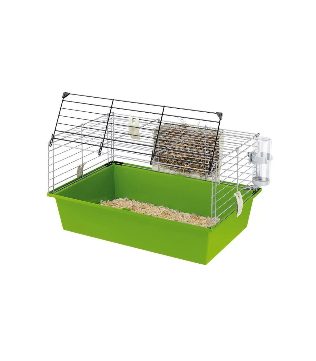 Cavie 60 è una gabbia per porcellini d'India con sistema di apertura e chiusura di recente rivisitazione, a garanzia della totale sicurezza per i piccoli ospiti. L'habitat ha una struttura tradizionale con fondo in plastica e struttura in rete metallica verniciata. Lo sportello frontale è completamente apribile per facilitare le operazioni di pulizia. All'interno, troverete accessori come beverino e mangiatoia in plastica per il fieno.