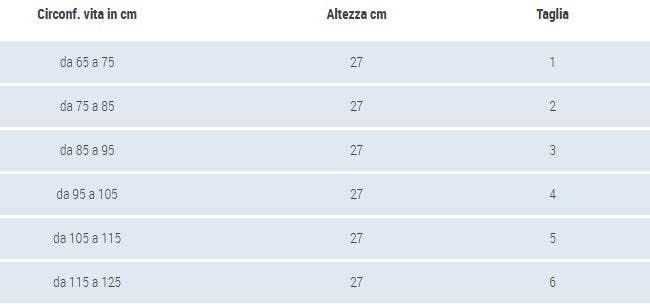 | Circonf. vita in cm | Altezza cm | Taglia | Codice paraf. |