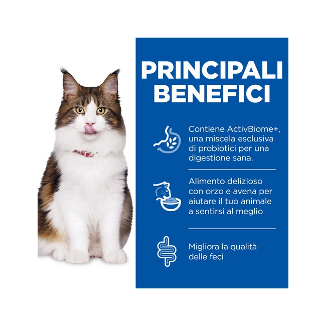 Alimento dietetico completo per gatti adulti di oltre 1 anno d'età. Contiene ActivBiome+, una miscela di prebiotici che aiuta a nutrire ed equilibrare rapidamente il microbioma unico dell'animale.