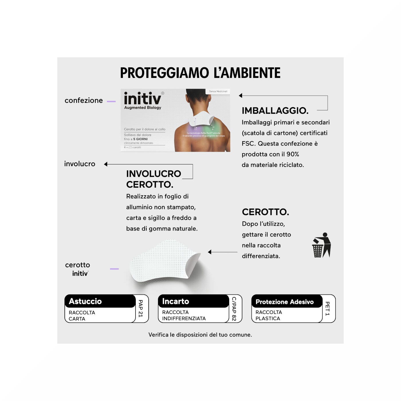 Il corpo assorbe ed emette fisiologicamente energia a infrarossi. Lo strato minerale ReflecTech, presente nel cerotto, trattiene e a sua volta riflette l'energia emessa dal corpo sull'area dolorante. La tecnologia su cui si basa initiv aumenta la microcircolazione del sangue, migliora la mobilità e l'apporto di ossigeno nella zona dolorante per alleviare il dolore.