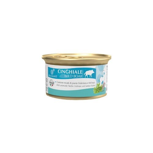 Carni e derivati (cinghiale 100%), sostanze minerali, destrosio, farina di lupino, olio di semi di girasole.