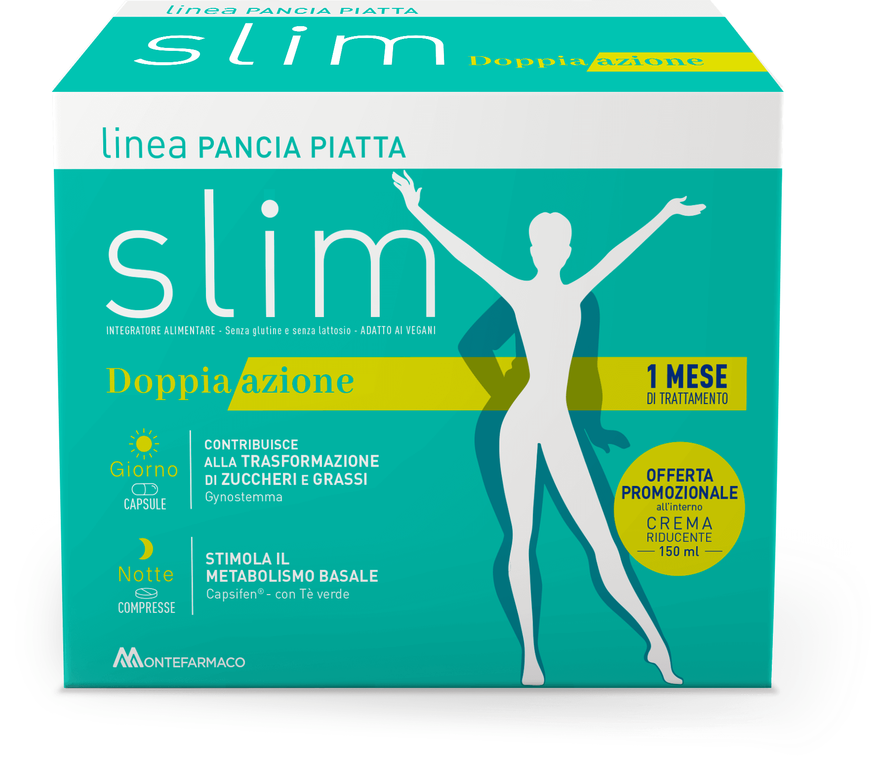 Slim è un integratore alimentare che ti supporta nei programmi di perdita di peso, in aggiunta a una dieta bilanciata e a una regolare attività fisica