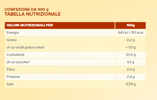 Patate reidratate 70% (acqua, fiocchi di patate), farina di riso, farina di mais, fecola di patate, sale; correttore di acidità: acido lattico; conservante: sorbato di potassio; aromi naturali.