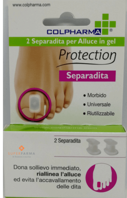 Aiuta a mantenere l'alluce in posizione corretta in caso di accavallamento, evitando lo sfregamento delle dita causa di lesioni e infezioni.