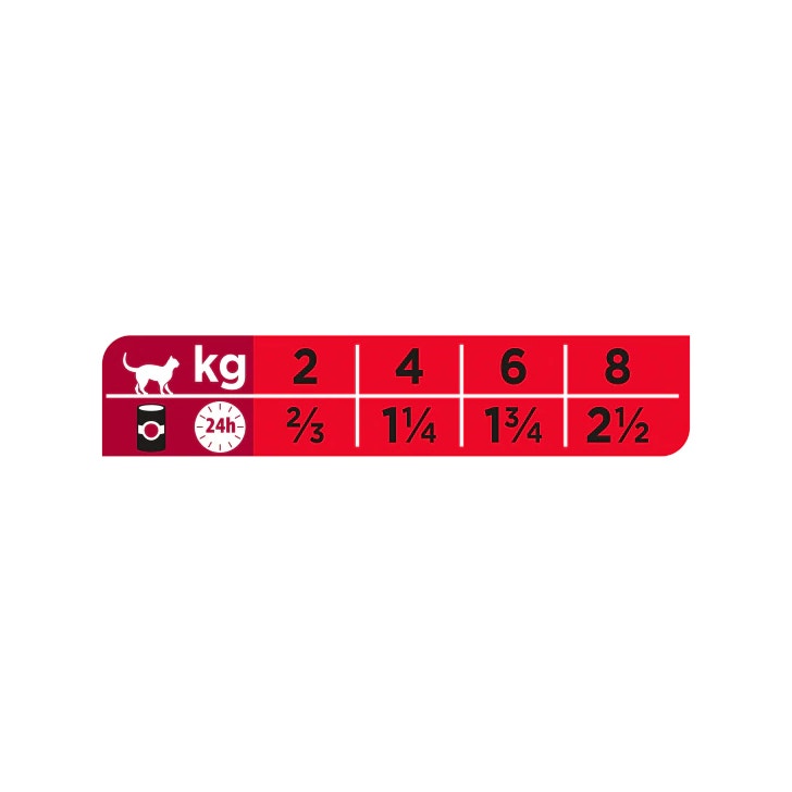 | Peso del gatto in Kg | Razione giornaliera (lattina 195g) |