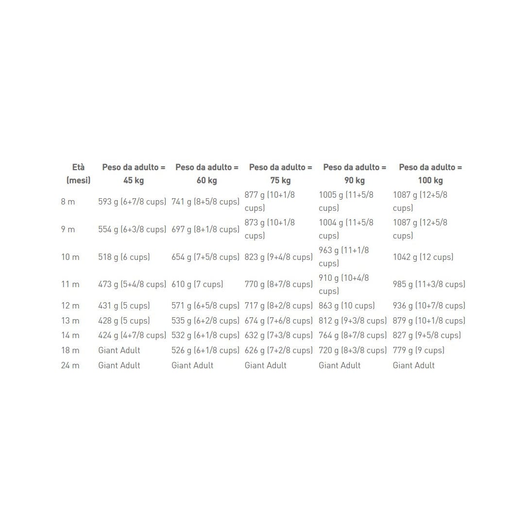 - seconda fase della crescita per cuccioli di taglia gigante da 8 a 18-24 mesi.