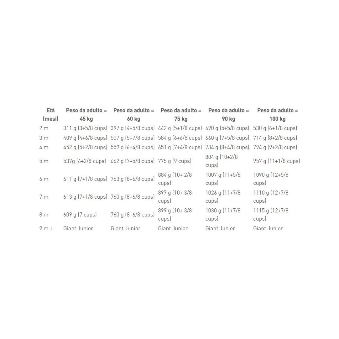 - prima fase della crescita per cuccioli di taglia gigante da 2 a 8 mesi.