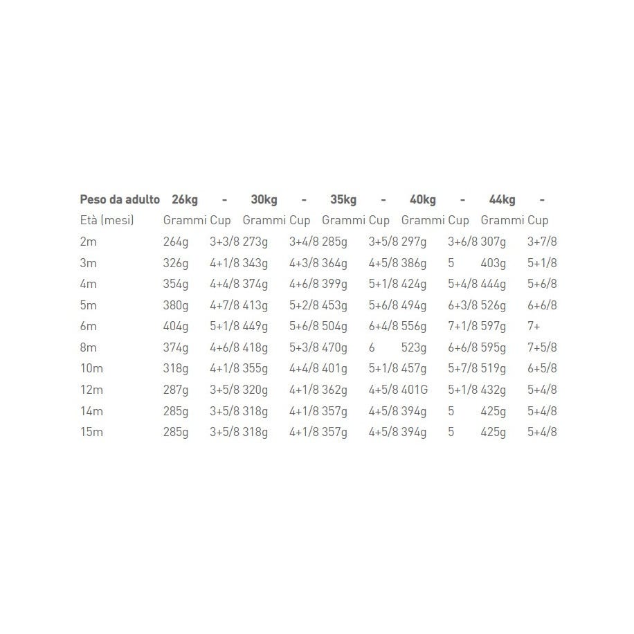 - per cuccioli di taglia Maxi da 2 a 15-18 mesi.