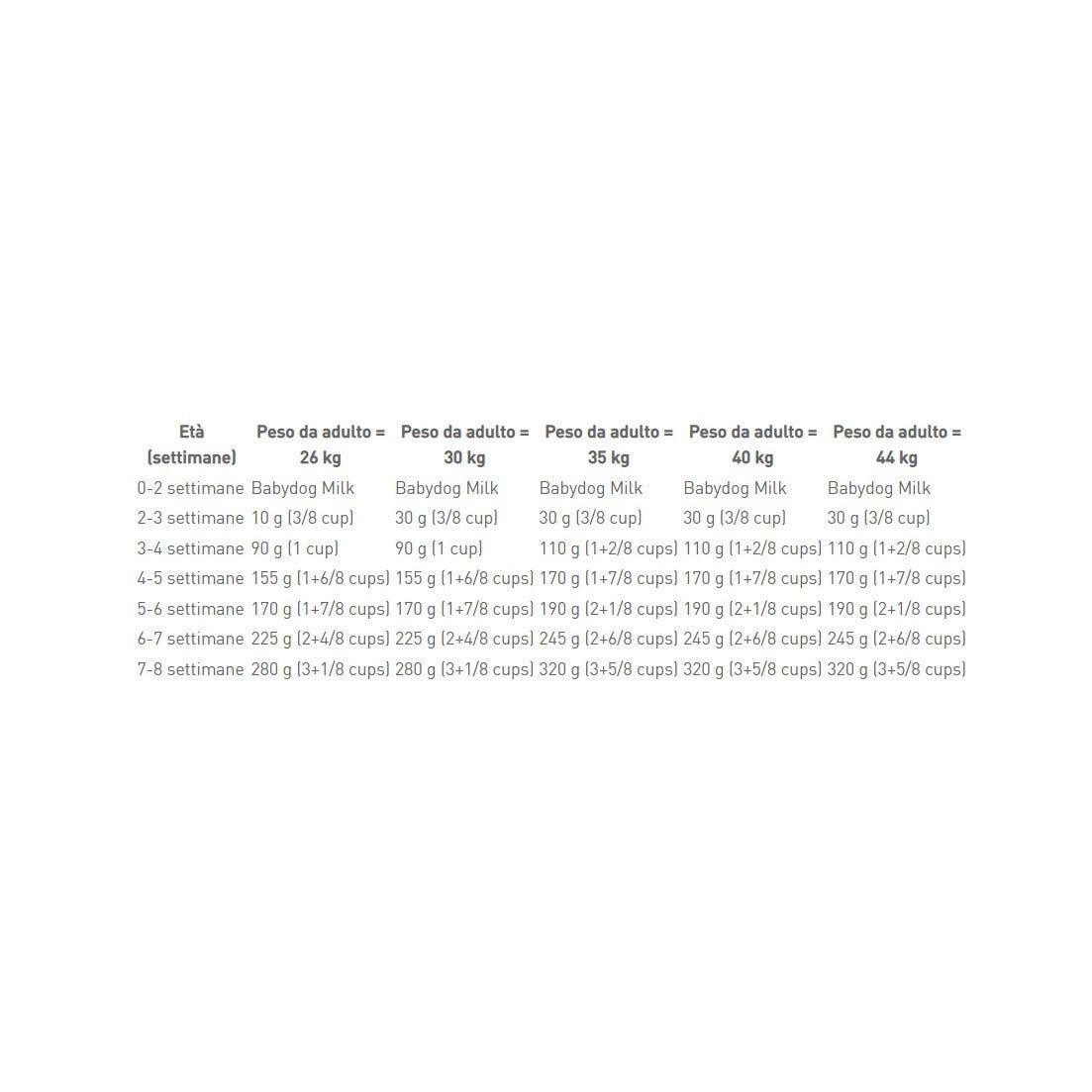 Peso da adulto 26-30 kg | Peso da adulto 35-44 kg | Lattina Starter Mousse 195 g | Peso da adulto 26 kg | Peso da adulto 30 kg | Peso da adulto 35-44 kg | |