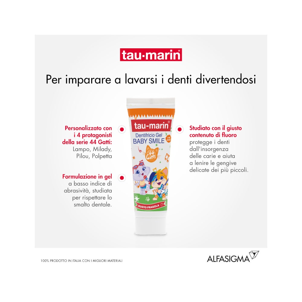 Il gusto alla fragola facilita l'approccio all'igiene orale quotidiana dei più piccoli.