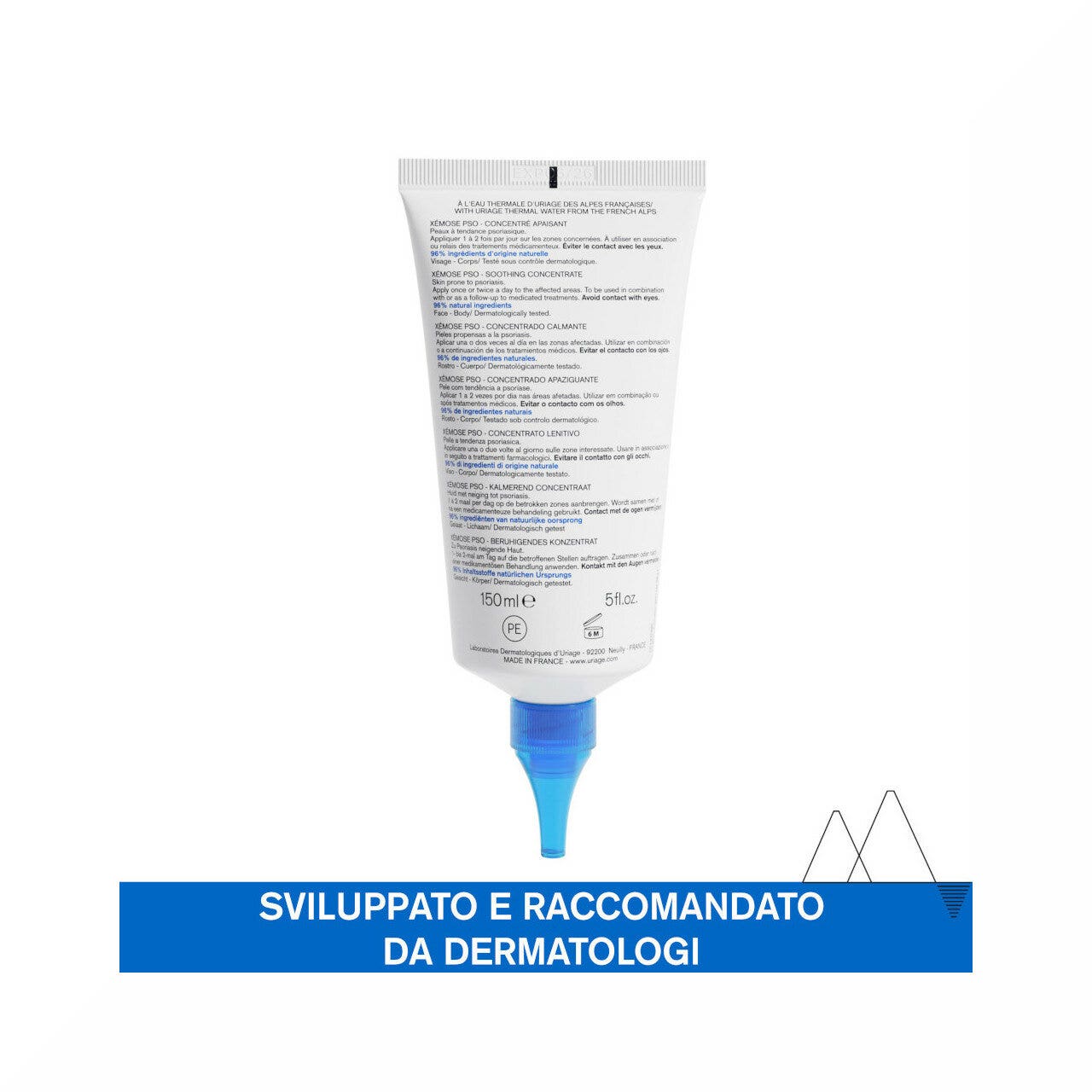 Favorisce l'eliminazione delle macchie e allevia la sensazione di prurito dovuta alla pelle secca abbinando l'acqua termale lenitiva a due brevetti.