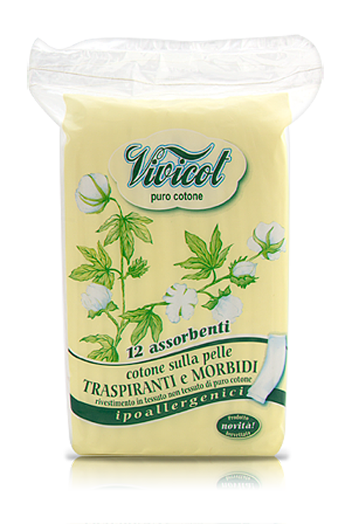La linea Vivicot puro cotone comprende una gamma completa di assorbenti in cotone naturale ipoallergenico al 100%, cotone sbiancato senza cloro, rivolto alle donne che hanno problemi di allergie e sensibilità verso le fibre sintetiche.La capacità assorbente e la forma modellata garantiscono la massima protezione ed una grande delicatezza.